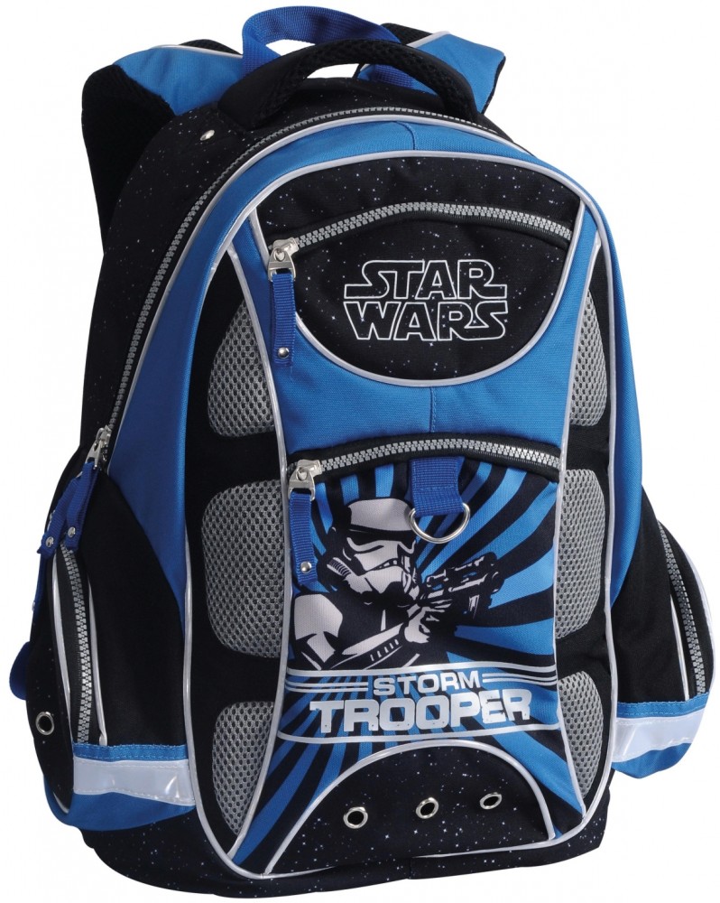 Удобный современный школьный рюкзак Erich Krause "Star Wars" выполнен из прочного полиэстера и украшен изображением штурмовика из знаменитого кинофильма "Звездные войны". Рюкзак состоит из одного большого отделения, закрывающегося на застежку-молнию. Внутри располагается прорезной карман на застежке-молнии, 4 накладных кармашка для мелочей, 2 небольших, накладных кармашка для ручек и карандашей, прорезной карман-сетка на молнии и накладной карман с клапаном на липучке. На лицевой стороне рюкзака предусмотрены 2 прорезных кармана, закрывающиеся на застежки-молнии. По бокам расположены 2 накладных кармана на молнии.