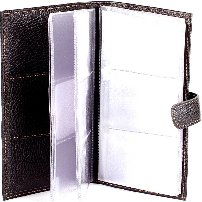 Визитница Premier, с хлястиком. Вместимость - 72 карты. Визитные и дисконтные карты располагаются в 3 ряда.