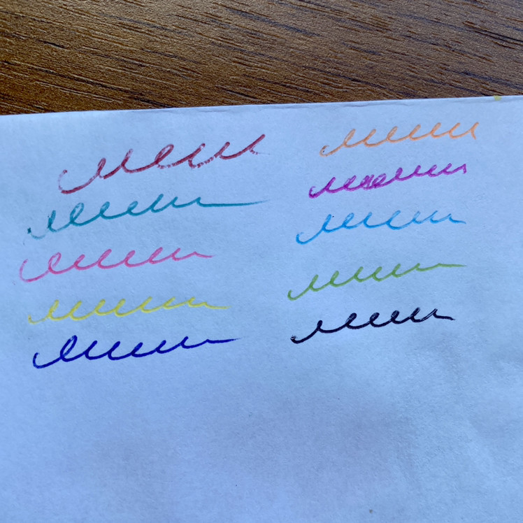Очень хорошие, пишут без прерывания цвета, тонко. Хотелось бы чтобы Флип закупил такой же набор,но с больших количеством цветов.