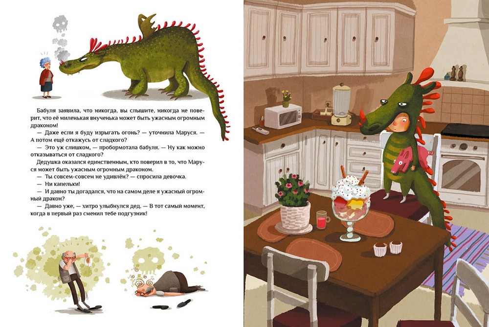 Хорошая книга, с забавной историей про девочку Марусю, которая решила что быть драконом намного интересней, чем принцессой, и я с ней согласна!) Красивые иллюстрации, юмор, и качество книги очень хорошее! Рекомендую!