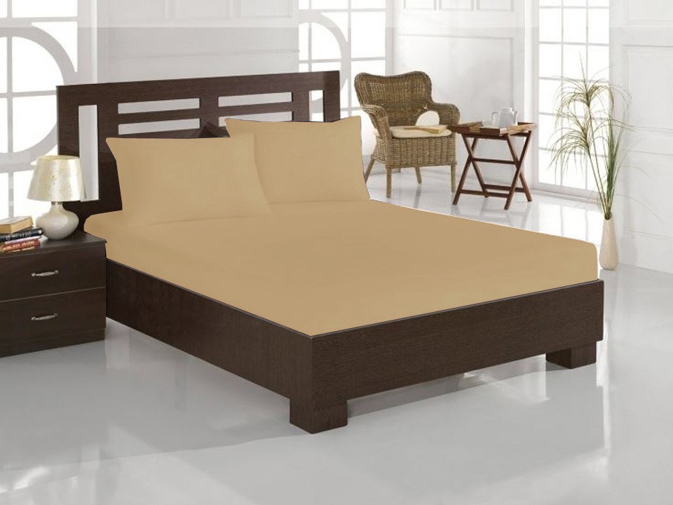 Отзывы «Простыня трикотажная на резинке (2-спальная, хлопок, 160x200+30 см, две наволочки 70х70), цвет кофейный»