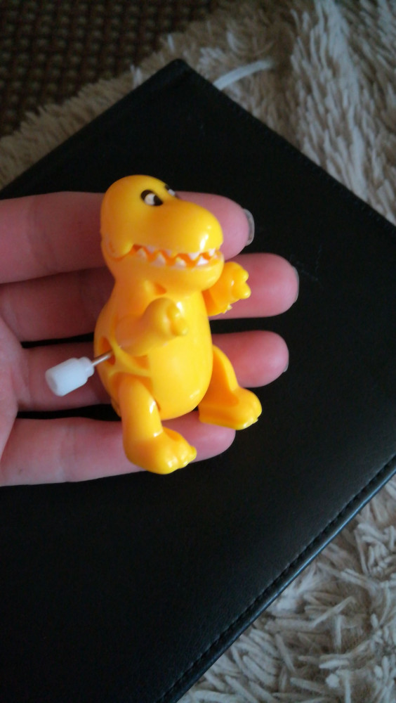 Маленькая игрушка. Качество среднее. Немного отрывает пасть, ходит.