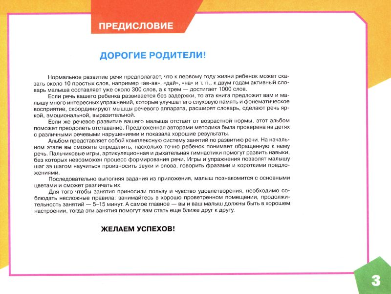 Этот альбом действительно уникальное пособие по развитию речи у малышей. Я преобрела его на днях, так моя дочка из рук его не выпускает ( ей 1г 8 мес). Я брала много книг по развитию, было что-то не . То картинки маленькие, то материал преподнесен не по возрасту. А этот альбом именно расчитан для нас, для нашего возраста. Если речь вашего ребенка развивается без задержки, то эта книга предложит вам и малышу много интересных упражнений, которые улучшат его слуховую память и фонематическое восприятие, скоординируют мышцы речевого аппарата, расширят словарь, сделают речь яркой, эмоциональной, выразительной. Если же речевое развитие вашего малыша отстает от возрастной нормы, этот альбом поможет преодалеть отставание. Мы занимаемся по этой книги всего 2 дня , а я уже определила, какие буквы не выговаривает моя дочь, над какими надо поработать. И я думаю мы решим свои речевые проблемы, так как у нас есть этот замечательный альбом. Потому что этот альбом представляет собой комплексную систему занятий по развитию речи. На начальном этапе вы сможите определить, насколько точно ребенок понимает обращенную к нему речь. Пальчиковые игры, артикуляционная и дыхательная гимнастика помогут развить навыки, без которых невозможен процесс формирования речи. Игры и упражнения позволят малышу шаг за шагом научиться произносить звуки и слова, говорить фразами и короткими предложениями. Картинки в этом альбоме объемные, яркие, понятные для этого возраста ( 1.5 - 3 л ). Одно меня расстроило , что переплет альбома мягкий, так как детки маленькие, могут где-то помять или порвать. А так все замечательно. Если вы любите своего ребенка, хотите что бы он развивался правильно, думаю это пособие вам пригодится.