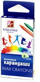 Карандаши восковые «Классика» изготовлены на основе полимерных восков и высококачественных пигментов. При рисовании дают яркий и ровный штрих. Имеют классическую круглую форму. Карандаши прочные и не требуют заточки. Размер карандашей 8*90 мм. Выпускаются в картонной коробке с европодвесом, предназначены для рисования и письма по бумаге, картону, дереву.