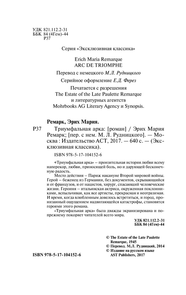 💳 Оплатить за товар можно при получении 🇰🇿 Есть бесплатная доставка по Казахстану 🎁 Копите бонусы с каждой покупки Серия: Эксклюзивная классика (Лучшее) «Триумфальная арка» — пронзительная история любви всему наперекор, любви, приносящей боль, но и дарующей бесконечную радость. |