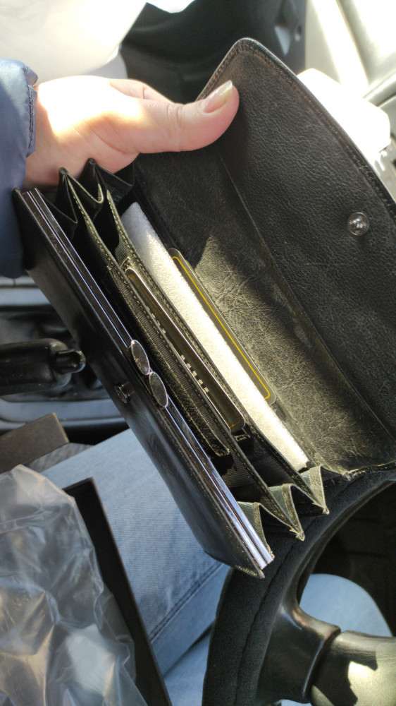 Шикарный, изящный, натуральная кожа, брала маме на день рождения. Сразу видно, что он дорогой. Внутри все без нареканий нигде нитки не торчат. Открывается легко