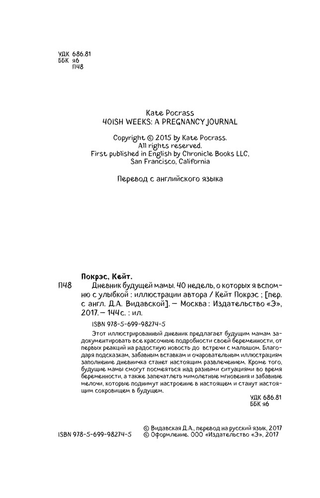 Дневник будущей мамы. 40 недель, о которых я вспомню с улыбкойВ данный момент этот товар отсутствует в продаже. Возможно, у нас найдется аналогичный или похожий товар здесь. Серия: Подарочные издания. Ребенок Этот иллюстрированный дневник предлагает будущим мамам задокументировать все красочные подробности своей беременности, от первых реакций на радостную новость до встречи с малышом. Благодаря подсказкам, забавным вставкам и очаровательным иллюстрациям заполнение дневничка станет настоящим развлечением. Кроме того, будущие мамы смогут посмеяться над разными ситуациями во время беременности, а также запечатлеть мимолетные мгновения и забавные мелочи, которые поднимут настроение в настоящем и станут настоящим сокровищем в будущем. |