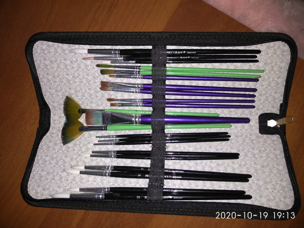 Спасибо большое продавцу. Доставка быстрая. Пенал длинный, очень удобный. Всё целое, замок работает идеально. Единственное я для себя с левой стороны сделала "отделы" для кистей т.к. там бола просто сплошная резинка.