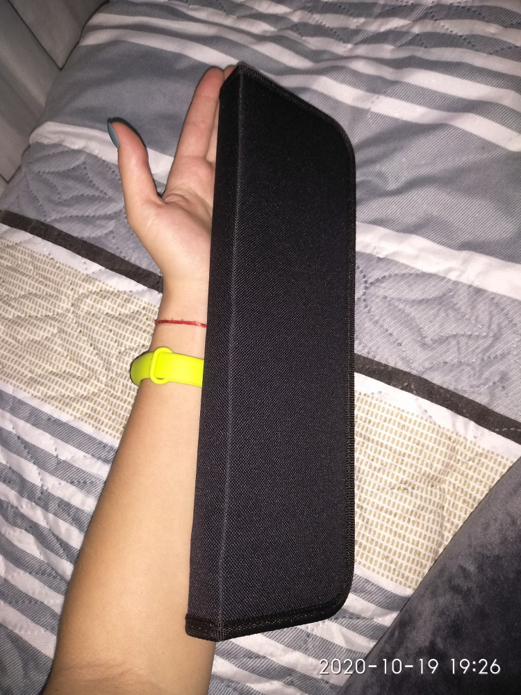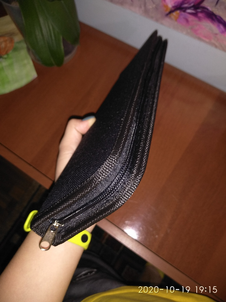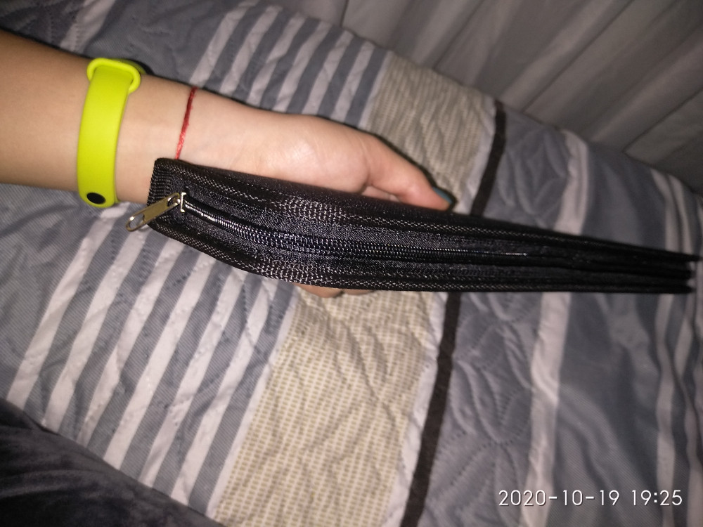Спасибо большое. Пенал меня полностью устраивает. Единственное со второй стороны пришлось самой термо-клеем сделать "отделы" под кисти т.к там была просто сплошная резинка. А так всё хорошо сшито, замок работает идеально. Доставка до Шымкента очень быстрая. 👌