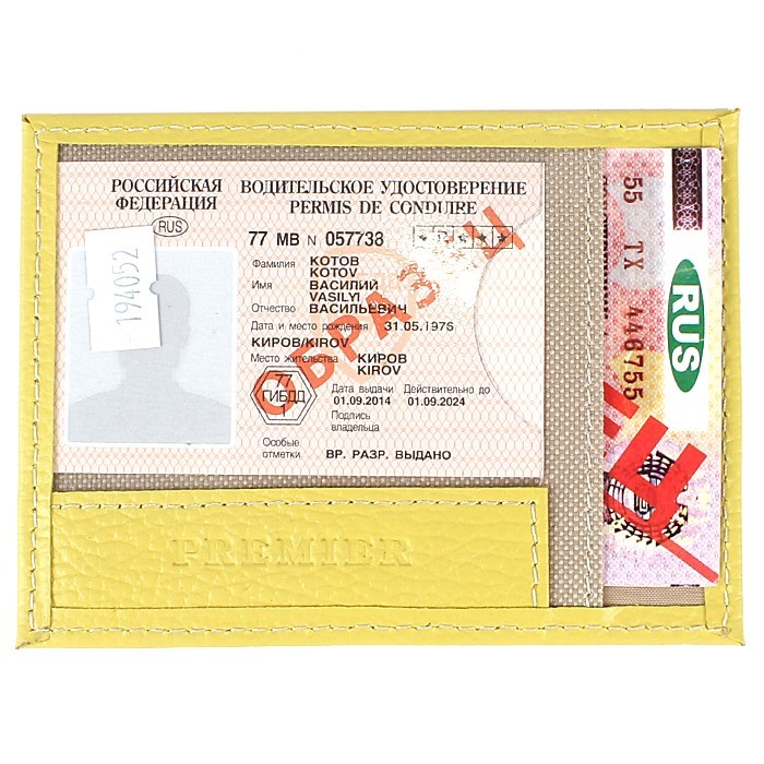 Обложка для автомобильных документов Premier, натуральная кожа, компактный формат.