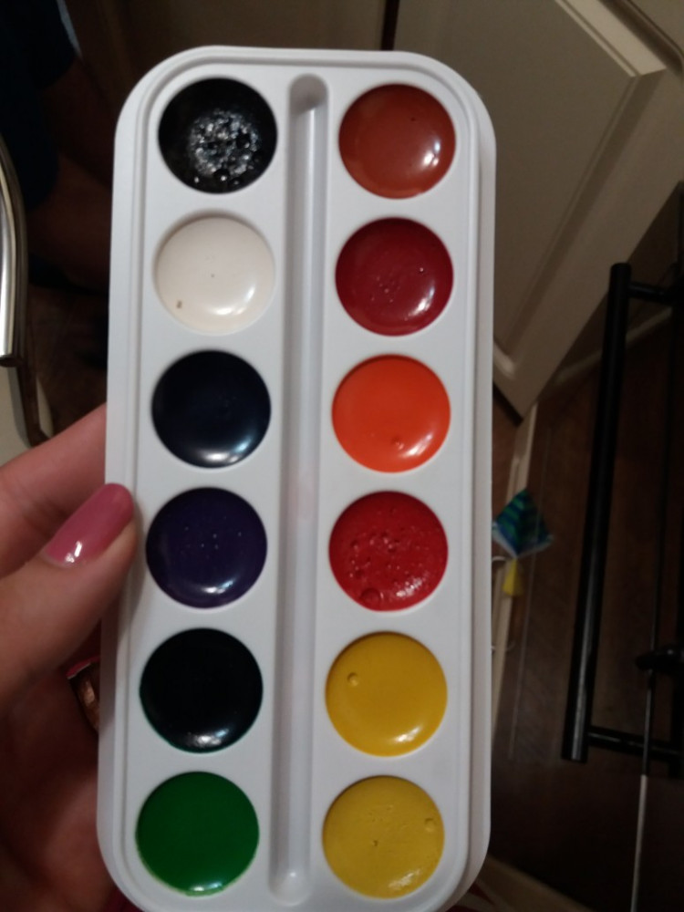 Акварель очень понравилась! Красок объем хороший, даже больше чем у мульти-пульти, ту ребенок "изкрасил" за два раза! Слишком тонкий слой красок, здесь наоборот, краски много!!! Эта фирма мне нравится! Берем еще=)