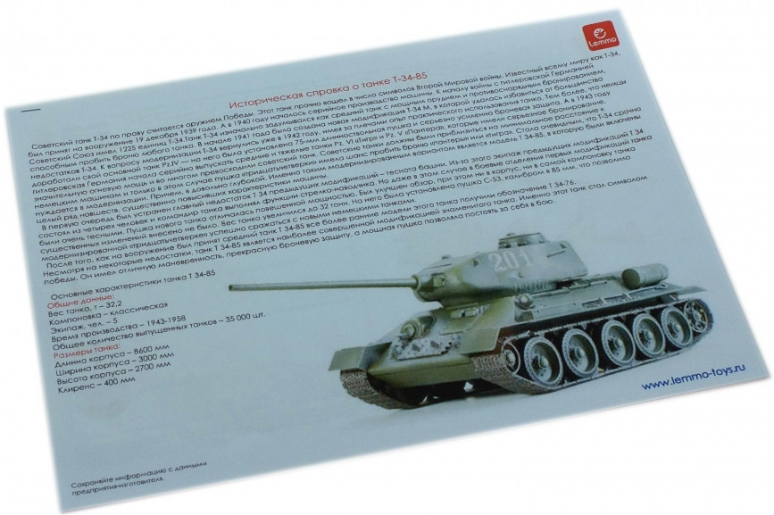 💳 Оплатить за товар можно при получении 🇰🇿 Есть бесплатная доставка по Казахстану от 1 дня 🎁 Копите бонусы с каждой покупки Серия: Военная техника Компания Леммо представляет модель популярного во всем мире Танка Т-34-85, который составлял основу танковых войск Советской Армии и использовался в Великой Отечественной войне. Кроме того, Т-34 — это абсолютный хит у поклонников игры World of Tanks, лицензионную продукцию которой выпускает компания Леммо. |