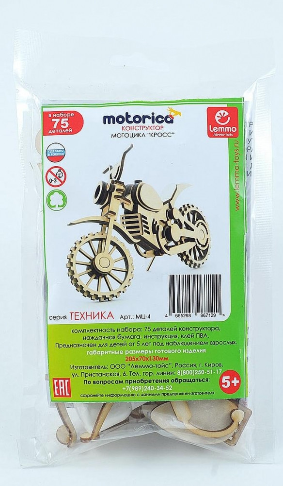 Lemmo Конструктор деревянный 3D «Мотоцикл Кросс»-40% +88