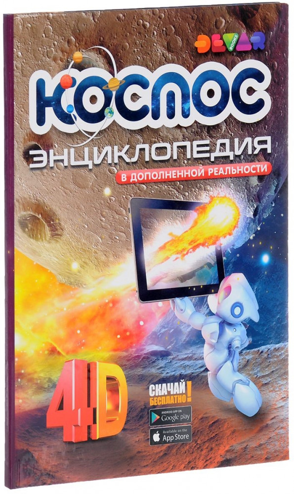 Космос. 4D Энциклопедия в дополненной реальностиВ данный момент этот товар отсутствует в продаже. Возможно, у нас найдется аналогичный или похожий товар здесь. Стать исследователем космоса может каждый. С помощью бесплатного приложения Devar books планеты оживут на страницах этой энциклопедии! Приближай и вращай космические тела, чтобы рассмотреть их получше. Нажимай иконки в приложении и узнавай много интересных фактов от твоего собственного робота-помощника. Каждую планету можно разложить на слои: от внешней оболочки до ядра. Изучай крупнейшие спутники планеты и смотри её местоположение в Солнечной системе. Присоединяйся к исследовательской миссии на Марсе: управляй марсоходом «Кьюриосити» и собирай образцы грунта. Наше большое космическое путешествие начинается прямо сейчас. Ты готов? |