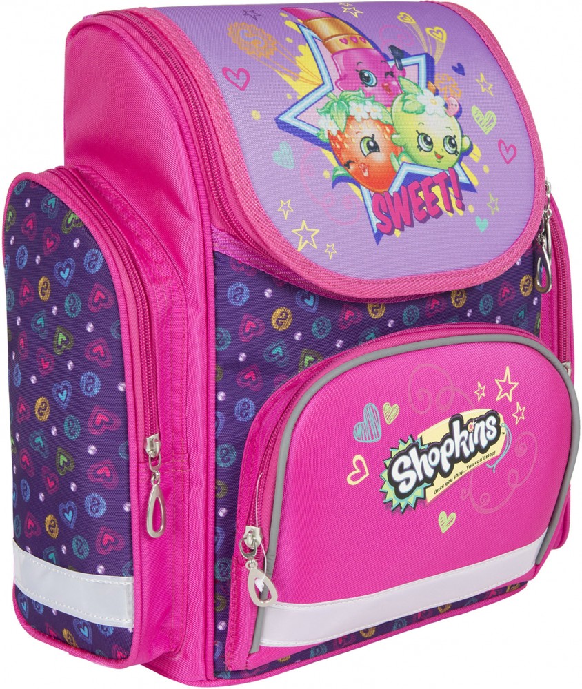 Ортопедический рюкзак "Шопкинс" с твердым корпусом оптимален для школы: он имеет легкий вес и компактный, удобный размер. Основное отделение закрывается на молнию, подходит для формата А4, имеет отсек для тетрадей и карабин для ключей. Спереди находится карман на молнии, вмещающий пенал, а по бокам - 2 кармана на молнии высотой 23,5 см.