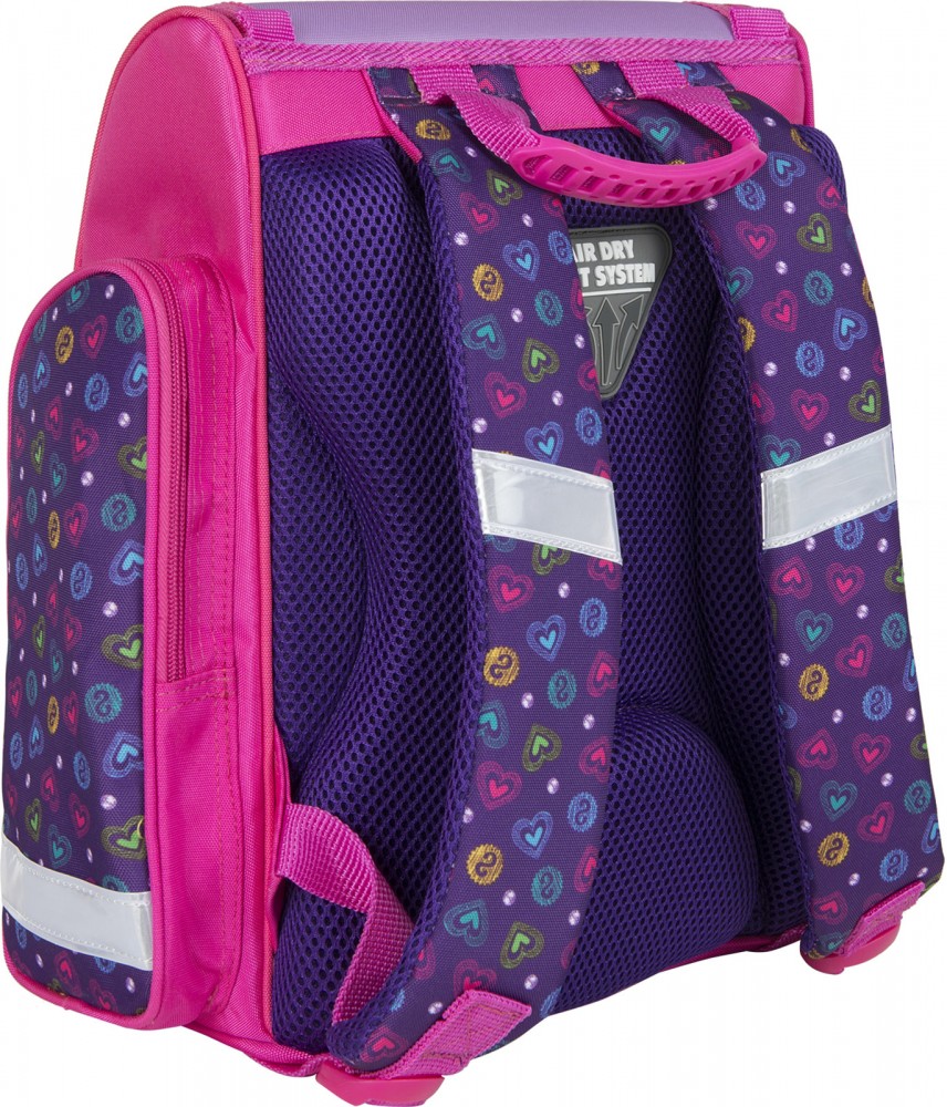 Светоотражающие элементы на лямках, лицевом и боковых карманах повышают видимость ребенка на дороге в темное время суток, повышая его безопасность. Прорезиненная ручка удобна для переноски рюкзака в руке или размещения на вешалке.