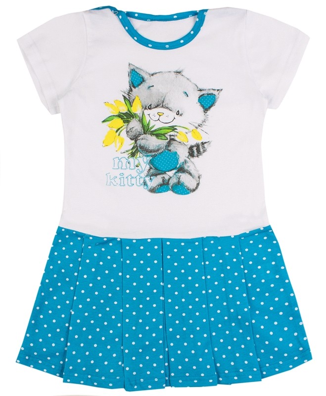 Платье сделано из 100% хлопка, стирается легко. Носим в садике, юбочка у платюшка короткая, что очень удобно.