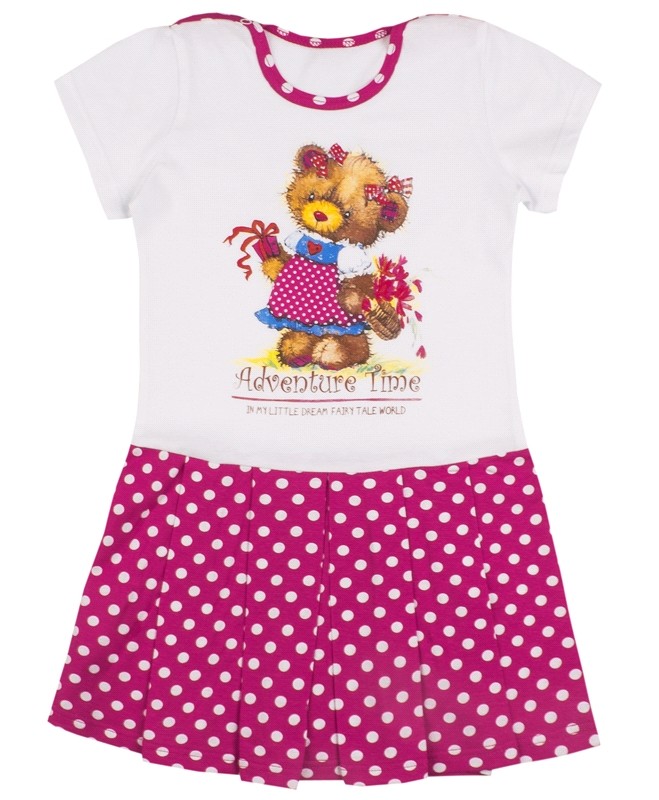 Платье сделано из 100% хлопка, стирается легко. Носим в садике, юбочка у платюшка короткая, что очень удобно.