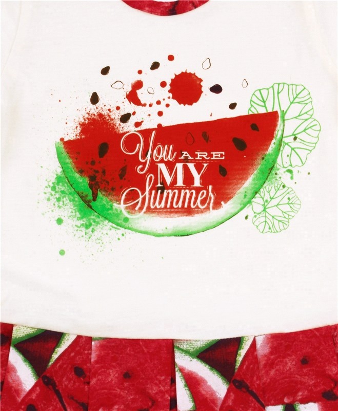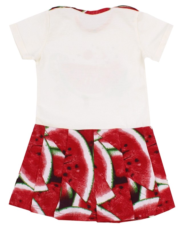 Покупала два платья с арбузом и апельсином. Красивые, яркие, как на картинке. Очень понравились, брала на вырост, как поведет себя после стирки не знаю. Надеюсь, не полиняет. Спасибо магазину, упаковано все замечательно и доставлено раньше обещанного.
