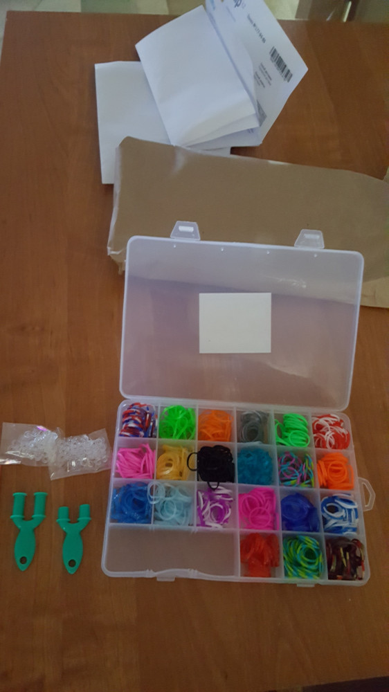 Набор понравился, приятные по качеству резиночки и сама упаковка прочная. В наборе 2 станка, 2 крючка (крючки хлипковаты), клипсы и случайный набор цветов. Ребенок 7-ми лет быстро освоил технику плетения простых браслетиков на станке, процесс плетения отлично тренирует фантазию. Резиночки имеют ненавязчивый приятный запах, никаких токсичных резких ароматов, как у некоторых производителей.