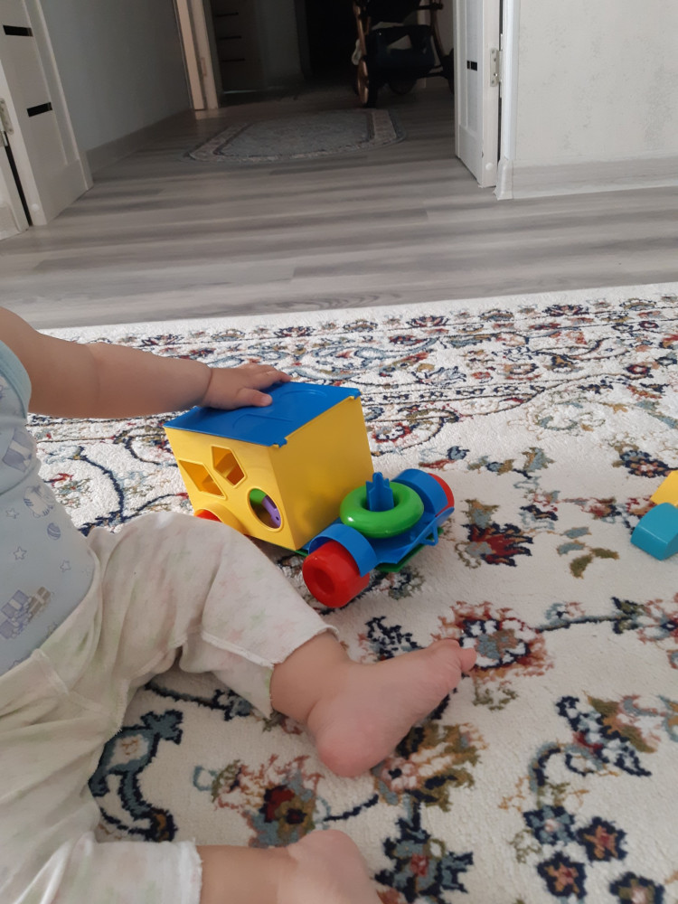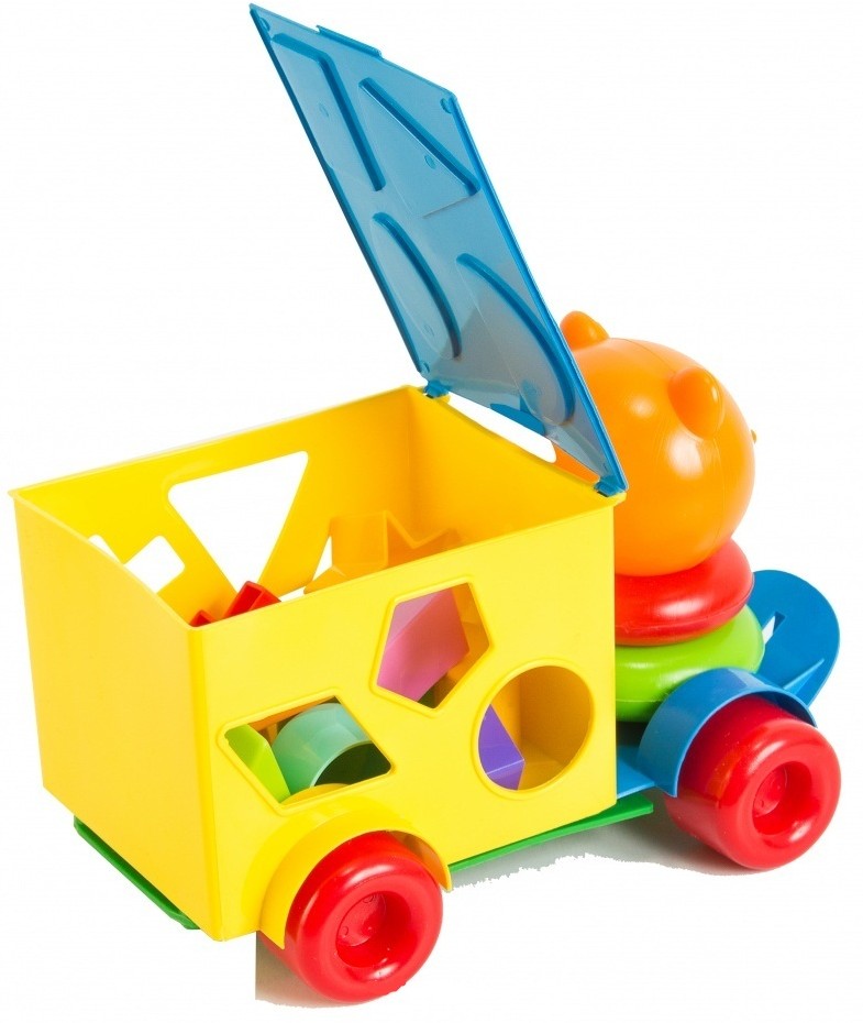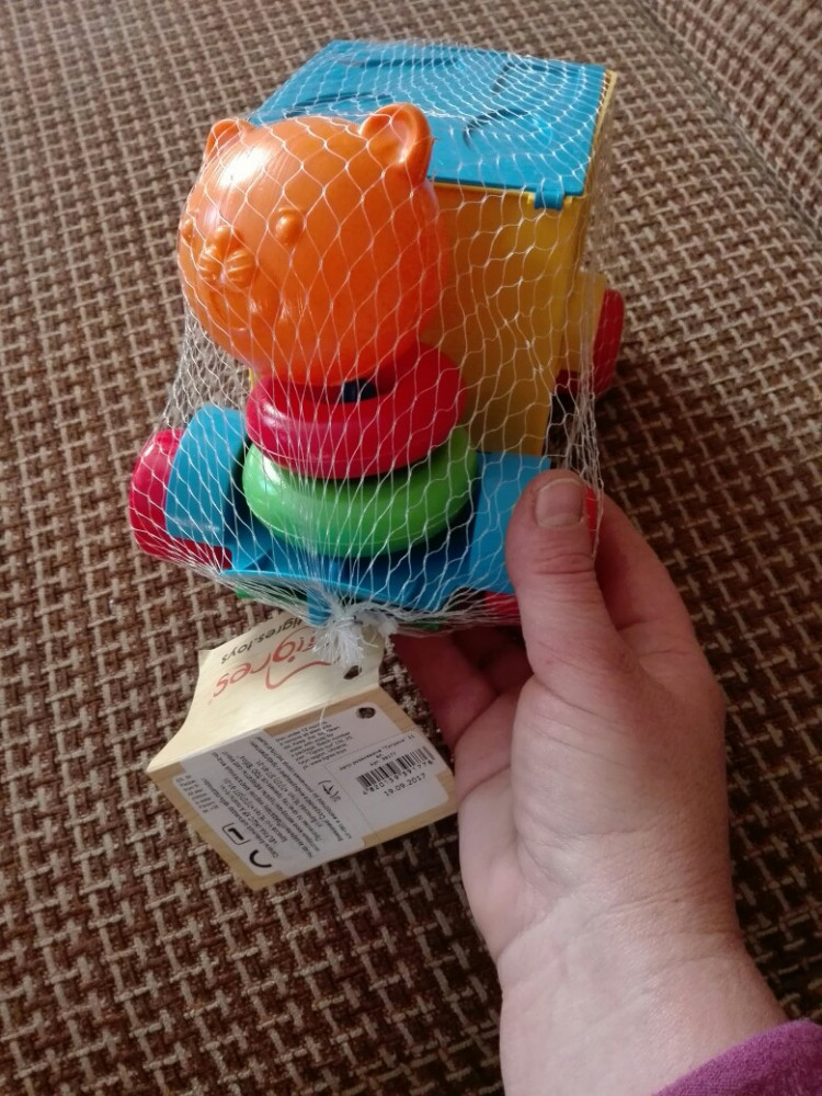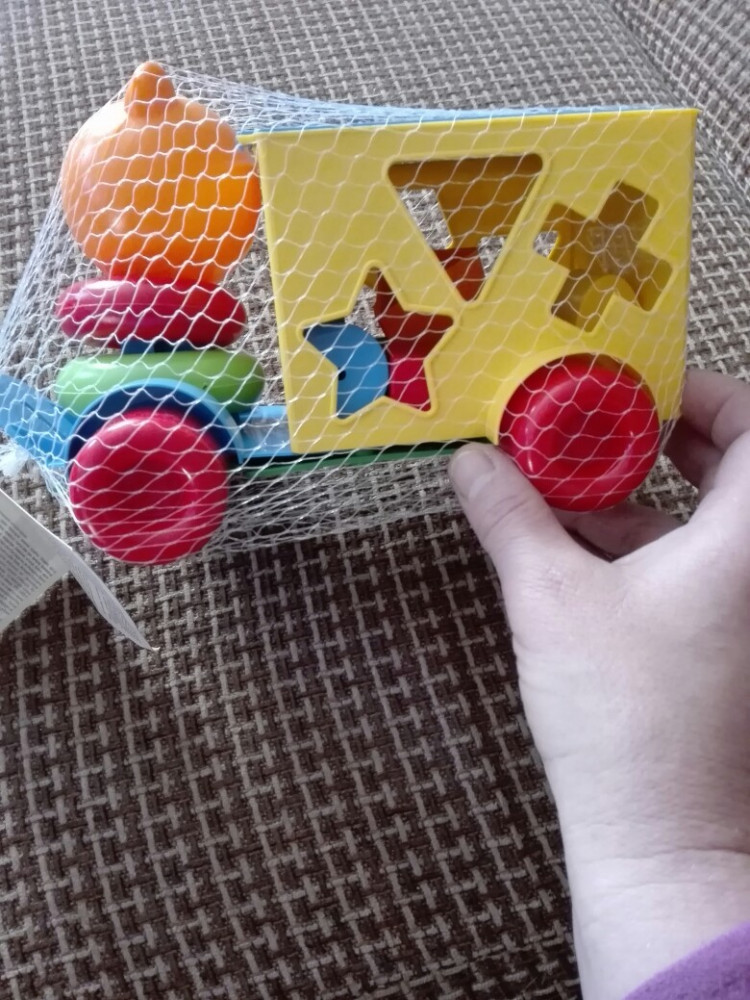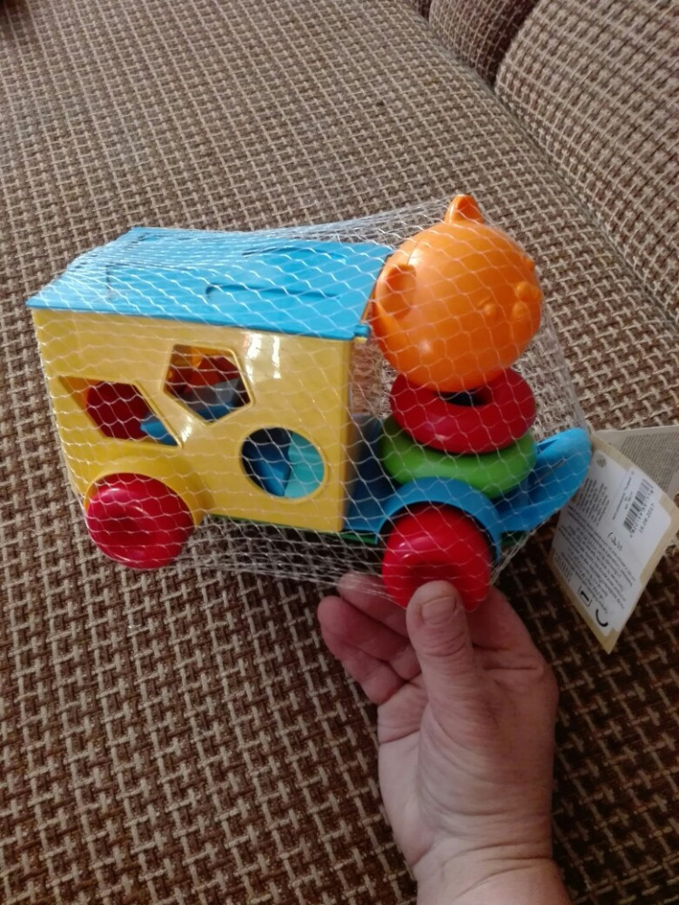 Нам сортер очень понравился. Цена замечательная для такой игрушки, так как кроме сортера это еще и просто машинка, и пирамидка. Катится грузовичок хорошо, ребенок с восторге, размер игрушки хороший, запаха нет.