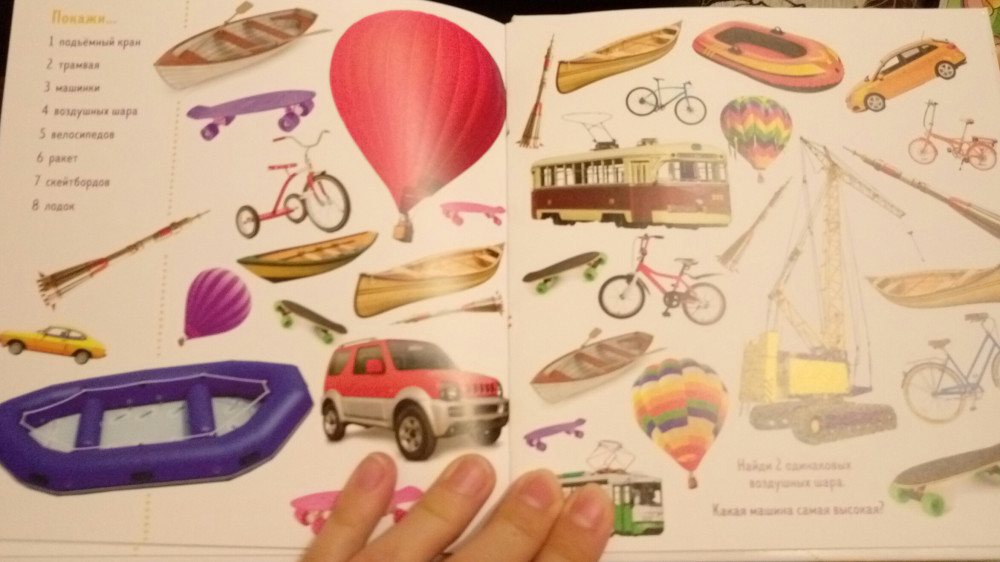 Не понравилась ни мне ни сыну хотя он большой любитель машинок. Думала будет очень много видов транспорта. По факту на каждой странице одно и тоже в разброс (тягач, автобус, троллейбус, велосипед, лодка, машина, воздушный шар, скейт, трамвай и все!). Могли бы всю пожарную технику, строительную, все марки машин, к примеру весь водный транспорт да много чего. Станиц нещадно мало при этом. Не советую