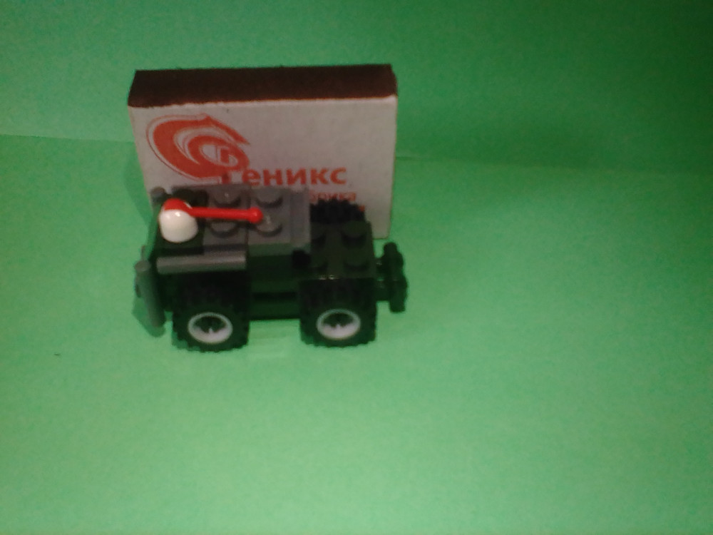 Отличный конструктор. Колеса подвижные. Сам едет по поверхности с малым уклоном, буквально в несколько градусов. Чтобы показать размеры - фото со спичечным коробком.