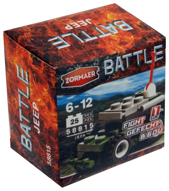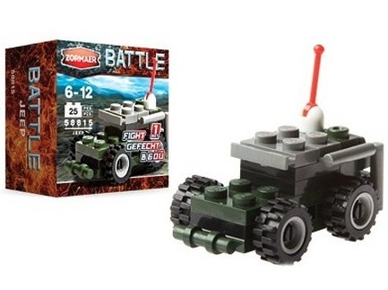 Zormaer Конструктор Battle - Джип, 25 деталейВ данный момент этот товар отсутствует в продаже. Возможно, у нас найдется аналогичный или похожий товар здесь. Конструктор Джип из серии Battle содержит 25 пластиковых деталей, из которых мальчик сможет собрать военный джип. Внедорожник окрашен в характерные цвета военной техники - темно-серый и хаки; у него имеются большие колеса с крупными шипами, благодаря которым джип сможет преодолевать большие расстояния по любой труднопроходимой местности. На крыше джипа расположена мощная пулеметная установка для ведения боевых действий. |