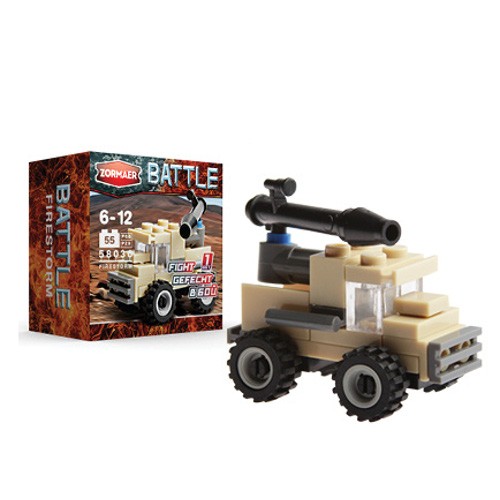 Zormaer Конструктор Battle - Огненный смерч, 28элементаВ данный момент этот товар отсутствует в продаже. Возможно, у нас найдется аналогичный или похожий товар здесь. Конструктор «Огненный смерч» от Zormaer привлечет внимание ребенка надолго. Набор состоит из 55 деталей, из которых мальчик сможет собрать военный джип с крупнокалиберной пушкой на крыше. Джип имеет колеса с крупными шипами, что позволит ему преодолевать большие расстояния по любому типу местности; большая пушка на крыше джипа поможет бороться с врагами. Детали конструктора изготовлены из прочной пластмассы и являются безопасными для ребенка. |