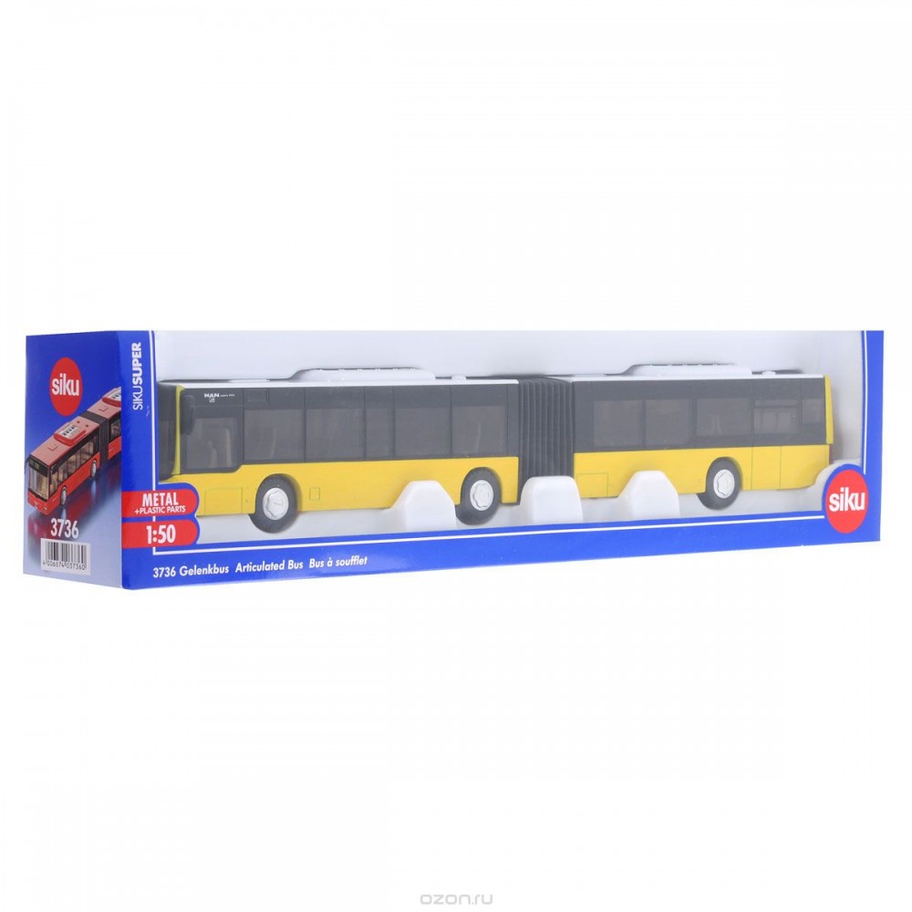 Siku Автобус-гармошка, жёлтыйВ данный момент этот товар отсутствует в продаже. Возможно, у нас найдется аналогичный или похожий товар здесь. Игрушечная модель сочленённый городской автобус MAN Lions City обязательно порадует любителей коллекционных моделей городского транспорта. |