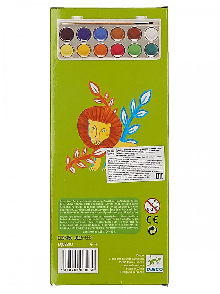 В данный момент этот товар отсутствует в продаже. Возможно, у нас найдется аналогичный или похожий товар здесь. Краски гуашь классических цветов от французского бренда Djeco - набор красок из 12 ярких классических цветов в удобном футляре с прозрачной крышкой и кисточкой.