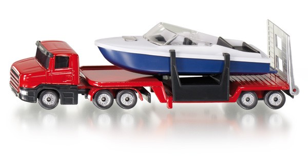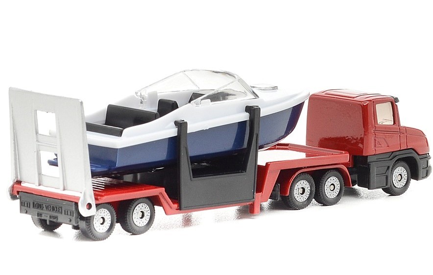 Siku Тягач с катеромВ данный момент этот товар отсутствует в продаже. Возможно, у нас найдется аналогичный или похожий товар здесь. Игрушечная модель тягач с катером на прицепе, корпус тягача и прицепа выполнены из металла, лобовое и боковые стёкла из прозрачной тонированной пластмассы, колёса выполнены из пластмассы и вращаются, можно катать. Прицеп отцепляется от тягача, катер снимается с прицепа. |