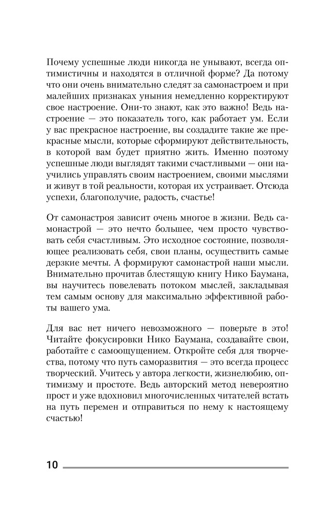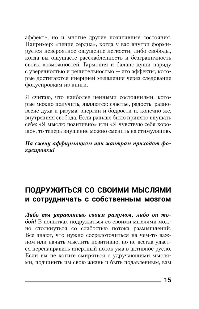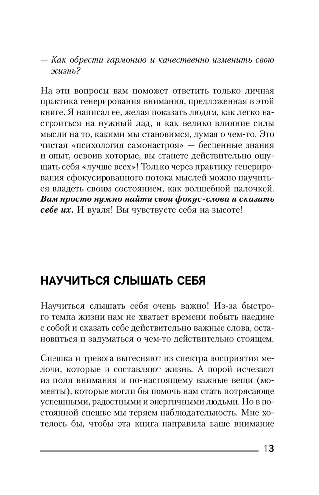 Книга очень понравилась, все четко и по существу, перечитываю уже третий раз, и каждый раз нахожу новые факты и возможности . Рекомендую и его вторую книгу. В комплекте, результаты стала получать очень быстро .