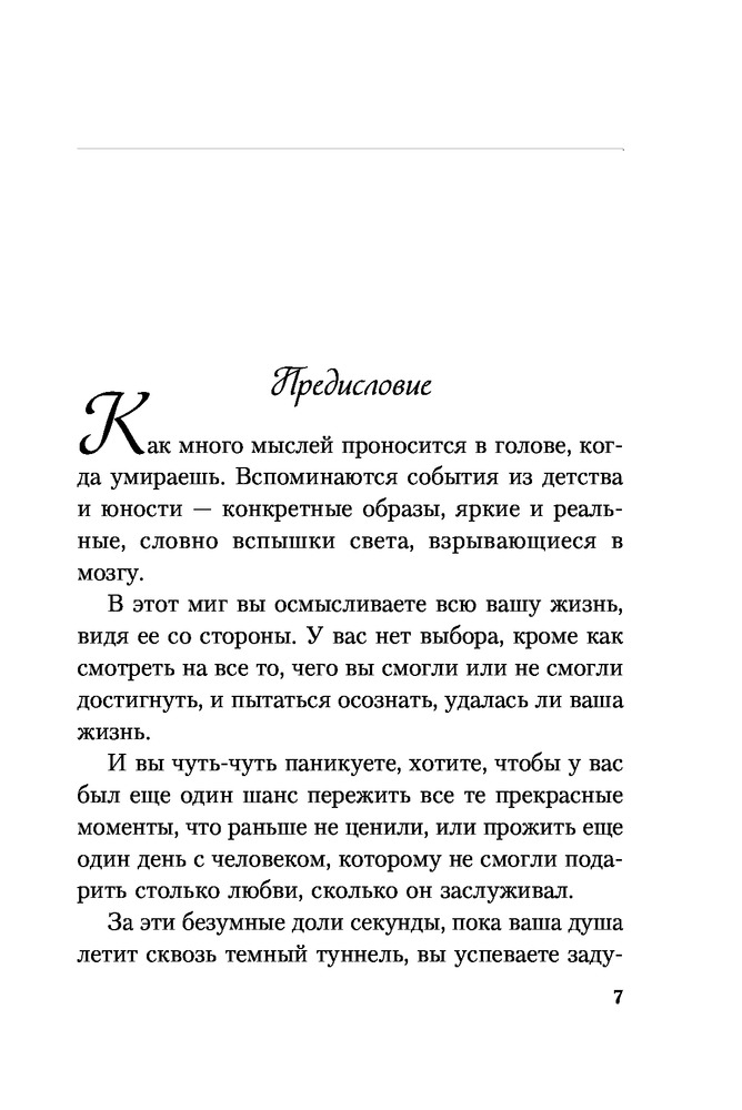 Отличная книга! Зацепила с первых строк... "Как много мыслей проносится в голове, когда умираешь…" Читается на одном дыхании. Пережила все тяготы вместе с главной героиней. Очень интересный переход от одного повествователя к другому. Советую к прочтению!