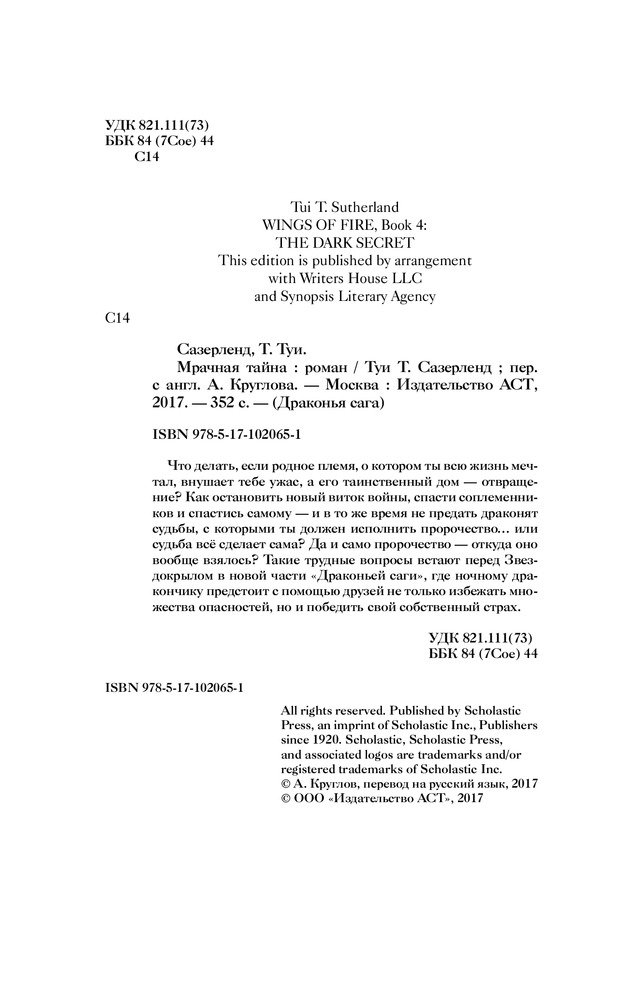 💳 Оплатить за товар можно при получении 🇰🇿 Есть бесплатная доставка по Казахстану от 1 дня 🎁 Копите бонусы с каждой покупки Серия: Драконья сага Что делать, если родное племя, о котором ты всю жизнь мечтал, внушает тебе ужас, а его таинственный дом — отвращение? Как остановить новый виток войны, спасти соплеменников и спастись самому — и в то же время не предать драконят судьбы, с которыми ты должен исполнить пророчество... или судьба всё сделает сама? Да и само пророчество — откуда оно вообще взялось? Такие трудные вопросы встают перед Звездокрылом в новой части «Драконьей саги», где ночному дракончику предстоит с помощью друзей не только избежать множества опасностей, но и победить свой собственный страх. |