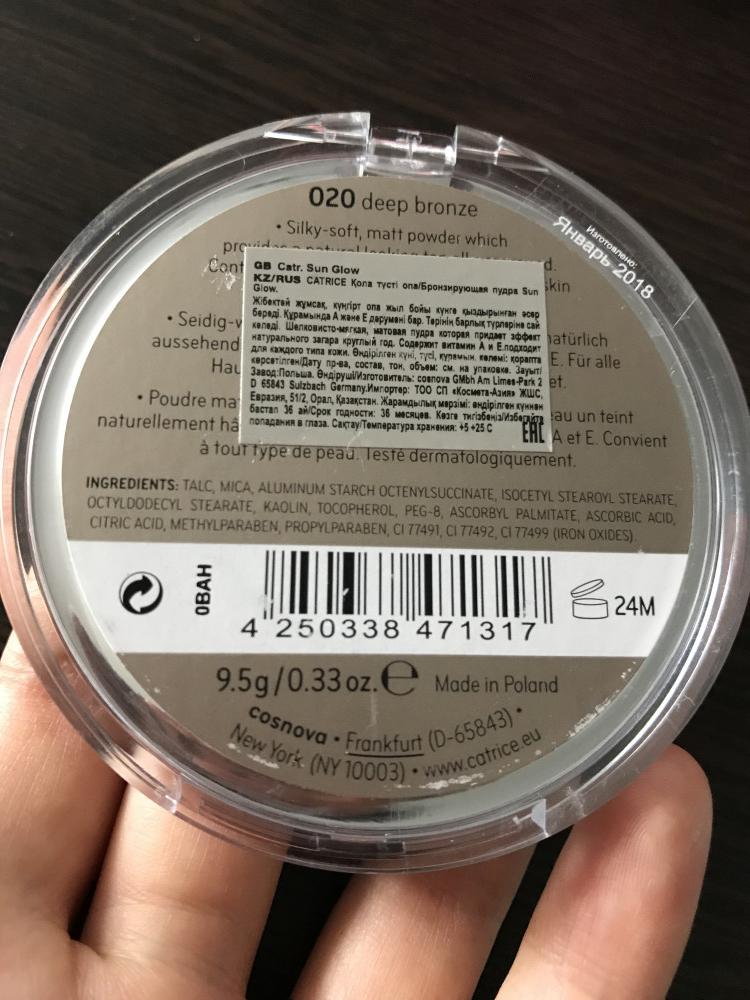 Неплохой бронзер. Заказывала оттенок 020 deep bronze. Бронзер мелкого помола, без шиммера, матовый как и заявлено. Имеет рыжеватый оттенок для моей смуглой кожи хороший, без явного запаха. Достаточно стойкий.