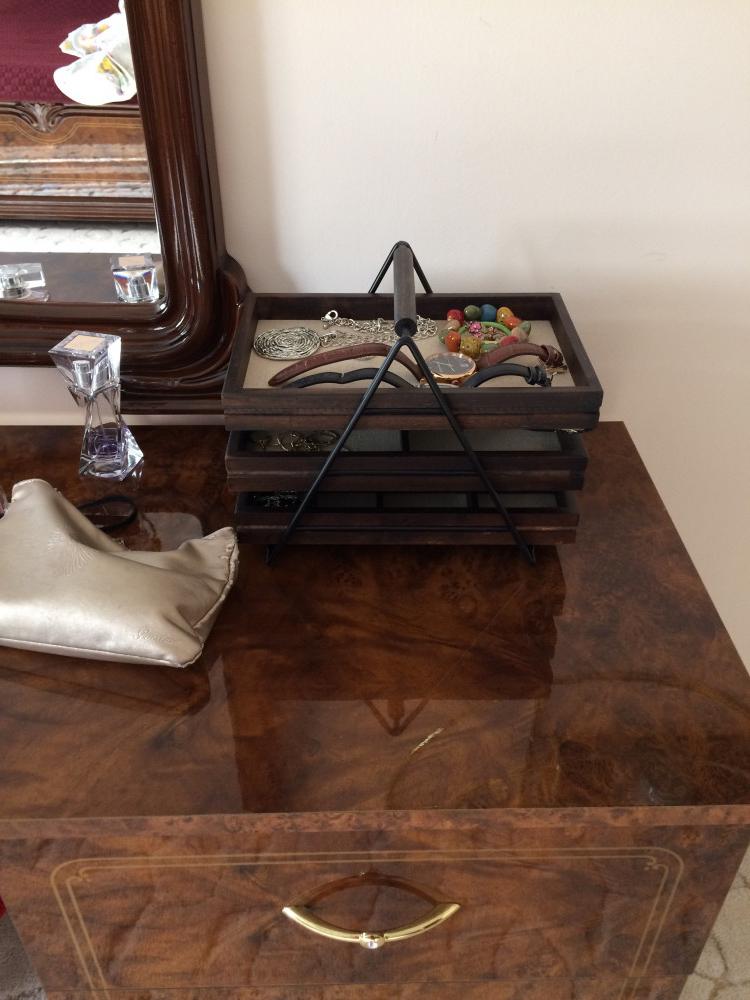 Этот интересный органайзер для украшений не только достаточно вместительный и удобный,но и выглядит презентабельно ,т.к выполнен из темного дерева! Рада своей удачной покупке!