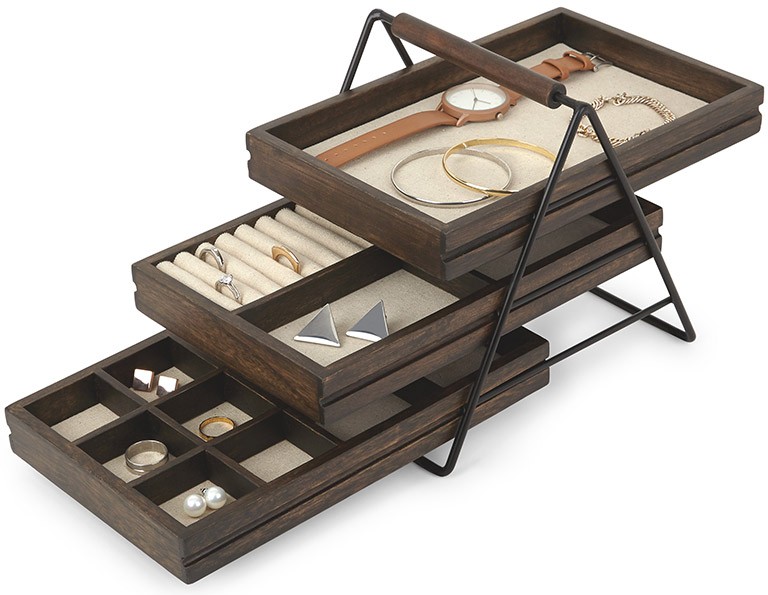Umbra Шкатулка для украшений «Terrace», орех+1258 органайзер декор вместительный удобный темное дерево