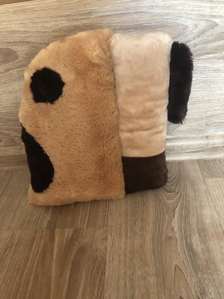 Ориентировалась на отзывы при покупке. И правда - мягкая и очень милая собачка. Думаю будет любимой подушкой.