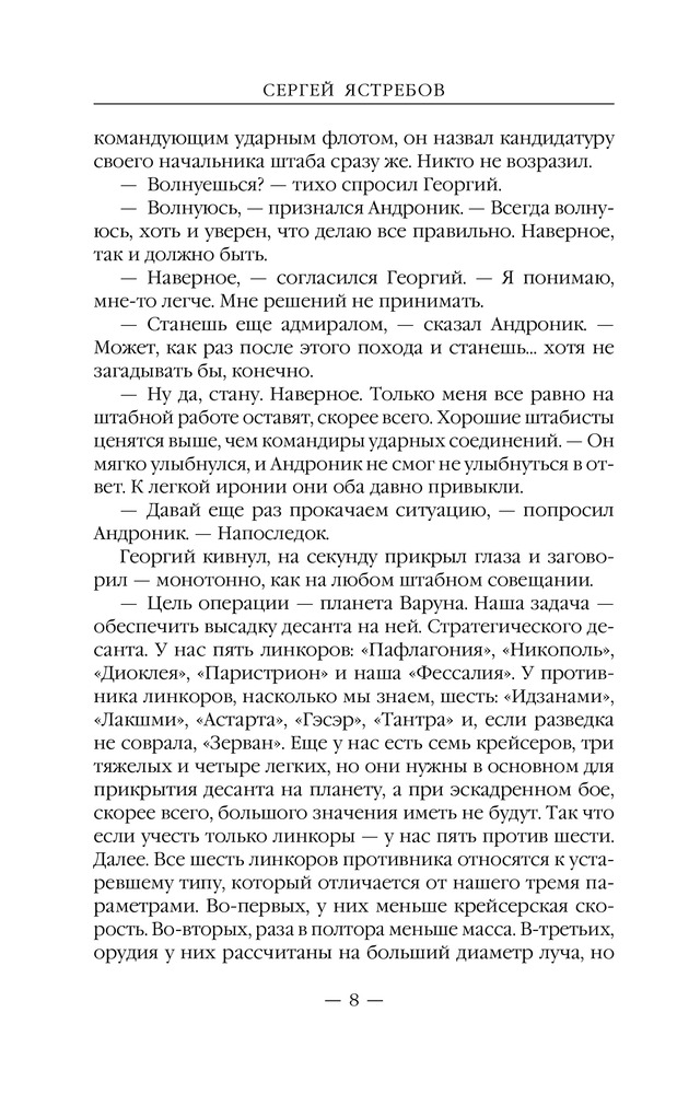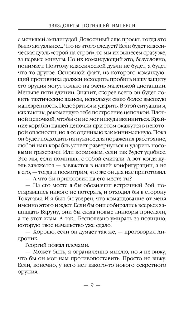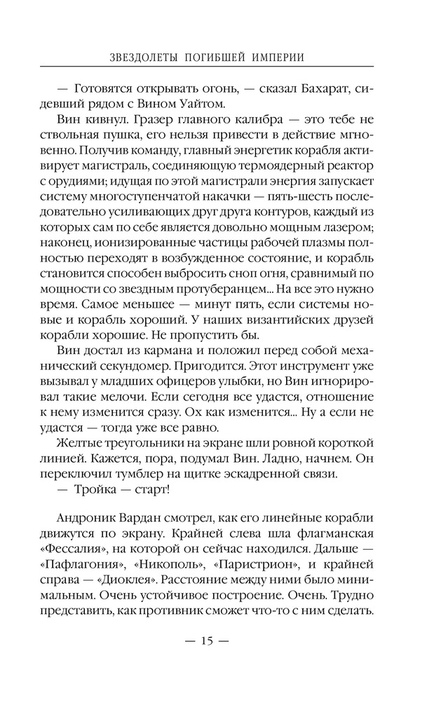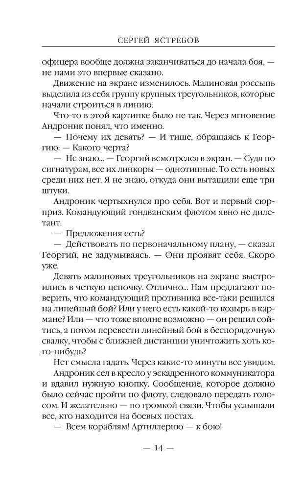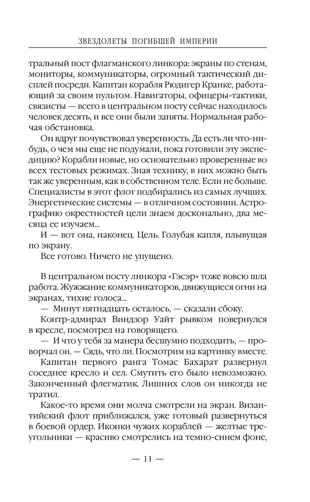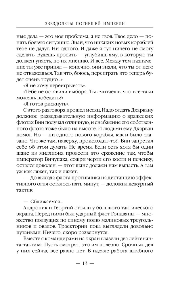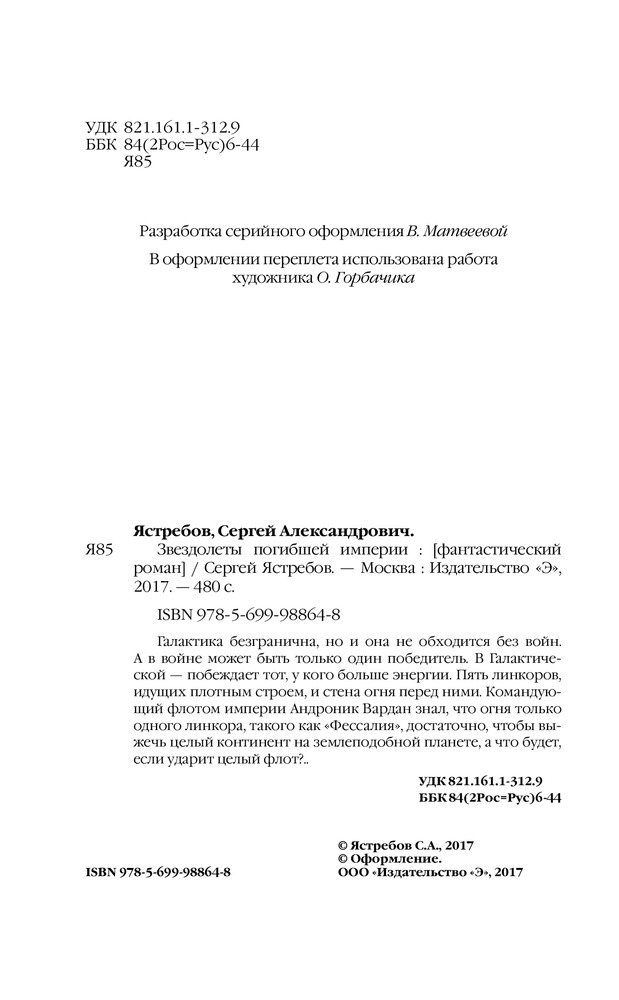Звездолеты погибшей империиВ данный момент этот товар отсутствует в продаже. Возможно, у нас найдется аналогичный или похожий товар здесь. Серия: Новый фантастический боевик Галактика безгранична, но и она не обходится без войн. А в войне может быть только один победитель. В Галактической — побеждает тот, у кого больше энергии. Пять линкоров, идущих плотным строем, и стена огня перед ними. Командующий флотом империи Андроник Вардан знал, что огня только одного линкора, такого как «Фессалия», достаточно, чтобы выжечь целый континент на землеподобной планете, а что будет, если ударит целый флот?.. |