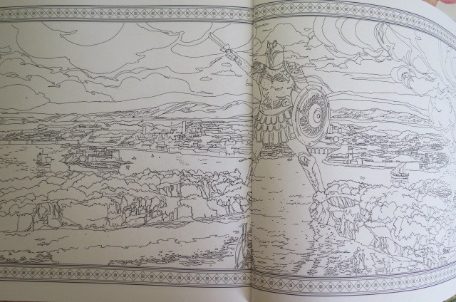 Огромная раскраска с очень красивыми рисунками. Многие рисунки на разворот. Из недостатков: раскраска на склейке. Клей крепкий, но некоторые развороты нужно раздирать, чтобы открыть картинку целиком. Такие большие картинки хорошо красить акварелью, но бумага для этого тонковата.