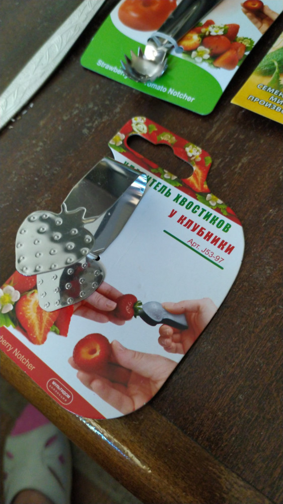 Такая милая вещица! Удобная, качественная и точно под руку сделана. Замечательно удаляет хвостики у клубники! Ну очень милая!