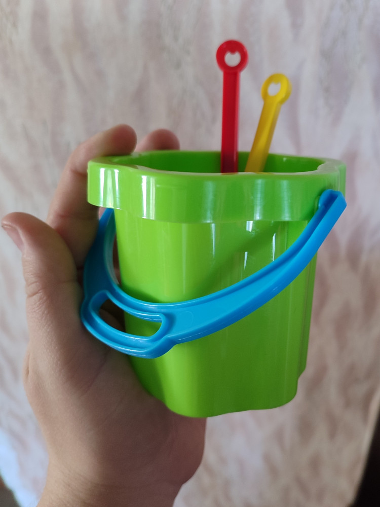 Миленькое маленькое ведерко хорошего качества! У нас девочка, 1,5 годика и нам пришло ярко розовое ведерко, очень довольна)) Спасибо, Flip!