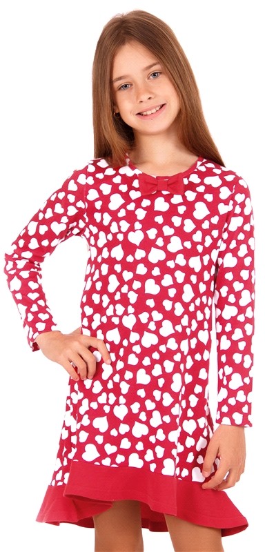 Красивое платье, дочка носит не снимая. На, почти, 8 лет (через 3 месяца) взяла 134, слегка рукав длинный, но это плюс, чем минус, лучше пусть больше, чем меньше. Цвет яркий, как на фото, хлопок 100%.