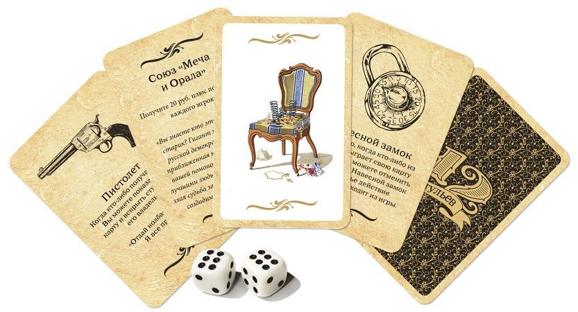 Настольная игра «12 стульев»В данный момент этот товар отсутствует в продаже. Возможно, у нас найдется аналогичный или похожий товар здесь. Вам предстоит найти стул, в котором спрятаны драгоценности. Талант правильно распоряжаться небольшой суммой, умение выигрывать торги, способность обходить противников в смекалке и памяти, готовность вставлять палки в колеса конкурентам, и, конечно же, немного удачи — вот залог победы в этом динамичном и увлекательном приключении. «12 стульев» принесет много удовольствия людям любого возраста. Игра не требует долгой подготовки и изучения правил. Ее всегда можно взять с собой и поиграть в дороге, на природе, в кафе, институте и других местах. |