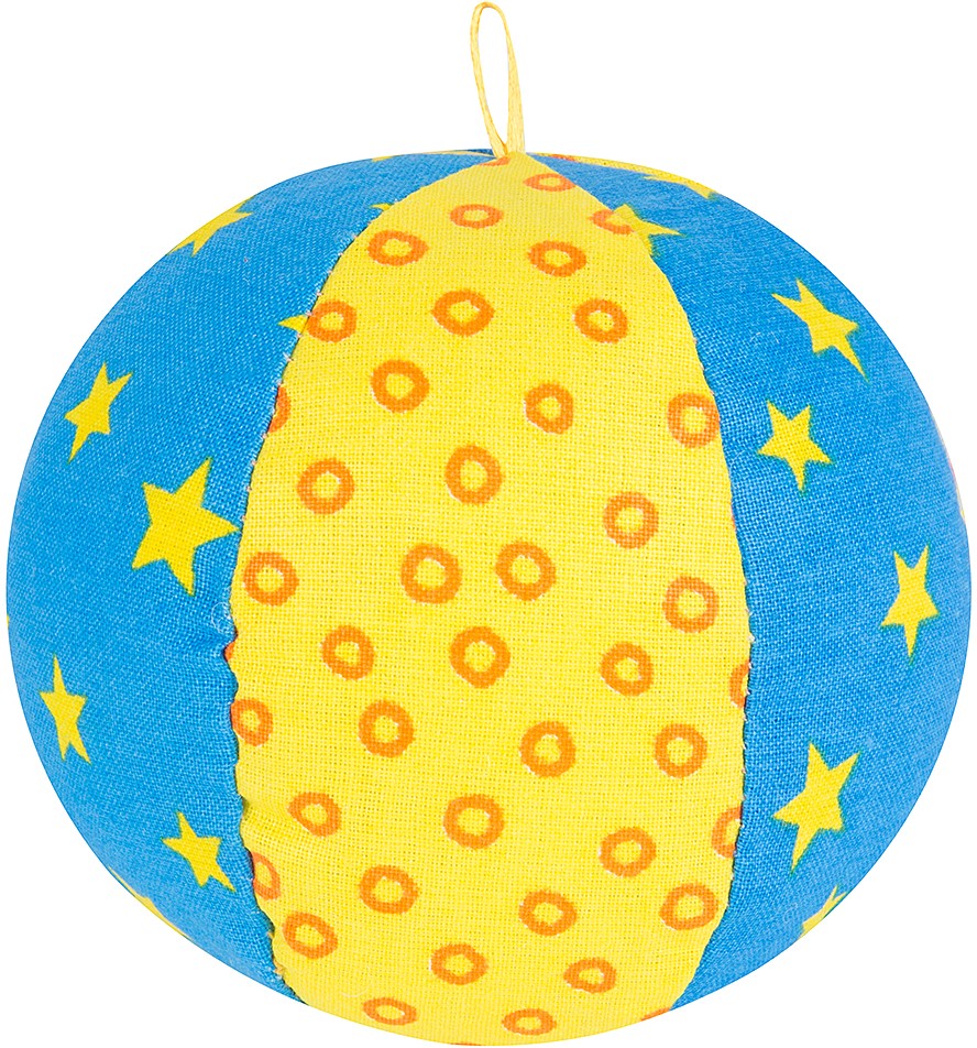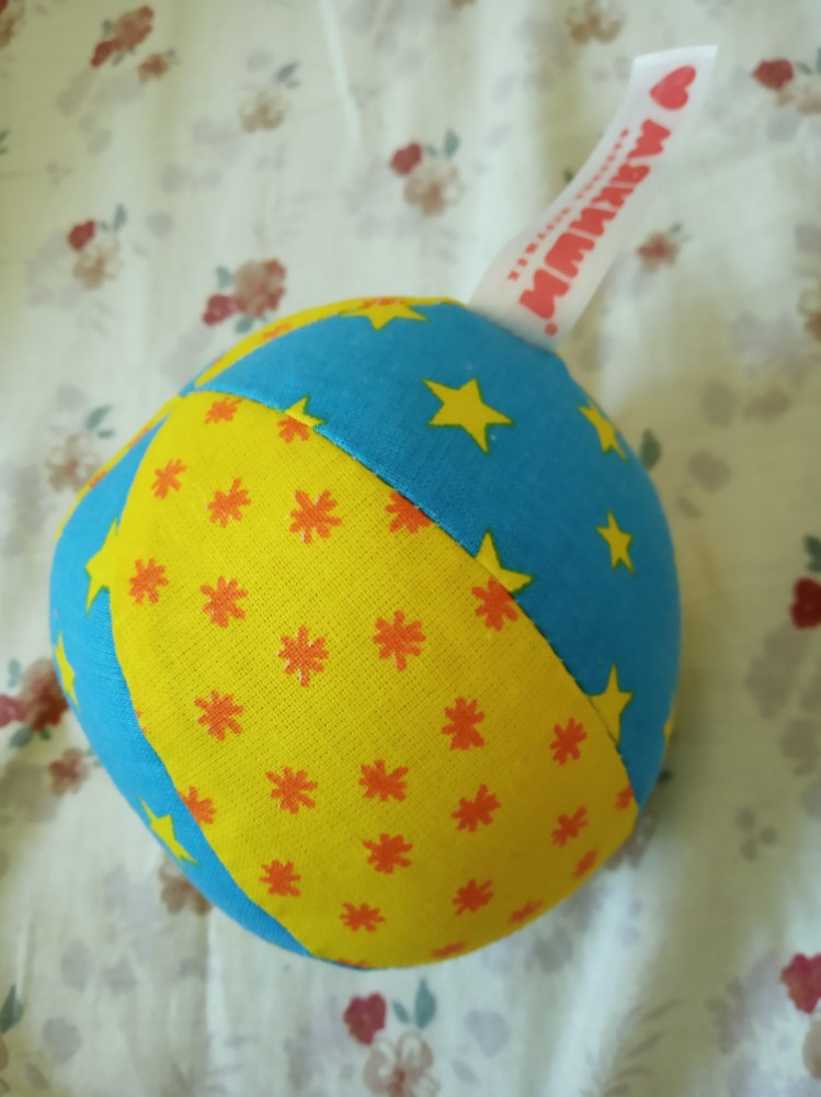 Мячик хорошего качества, без запаха, нитки не торчат, звук хороший, как раз, для того, чтобы ребенок не испугался. Нам 7 месяцев, очень понравился)