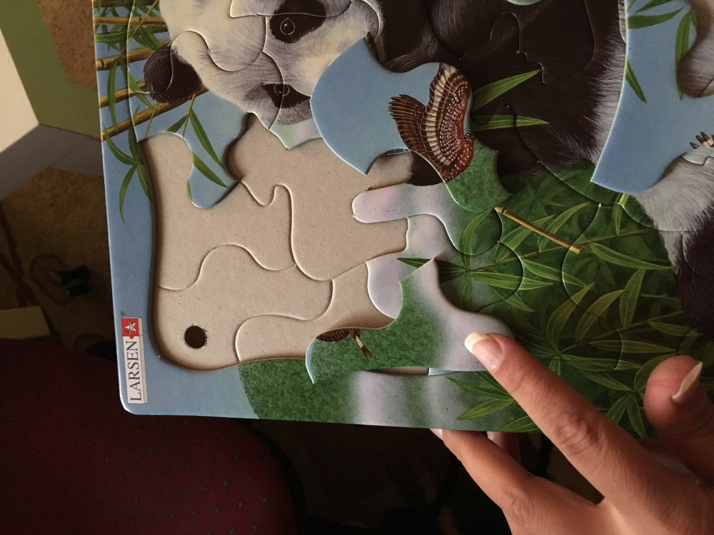 Пазлы Larsen вне конкуренции, есть подложка, детали не стандартной формы, что важно для первых пазлов, пока ребёнок не смотрит на картинку, а собирает по форме детали