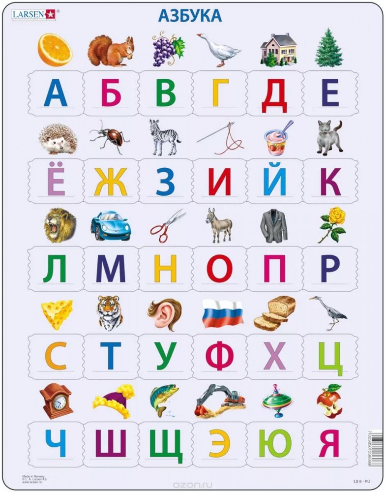плотный картон качество яркие цвета удобно ребенку В данный момент этот товар отсутствует в продаже. Возможно, у нас найдется аналогичный или похожий товар здесь. Серия: Алфавит Пазлы Ларсен - это прежде всего обучающие пазлы. Серия «Алфавит» в игровой форме знакомит детей от 3 лет с буквами и их последовательностью в алфавите.