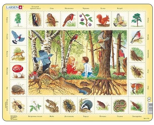 Серия: Окружающий мир Пазлы Ларсен - это прежде всего обучающие пазлы. Данная серия в игровой форме знакомит детей от 3 лет с животным и растительным миром. В центре пазла изображен сюжет с ландшафтом, а по контуру необходимо правильно выложить его обитателей. Подсказкой служат отпечатанные на картоне названия, которые помогут самым маленьким найти правильный ответ. |