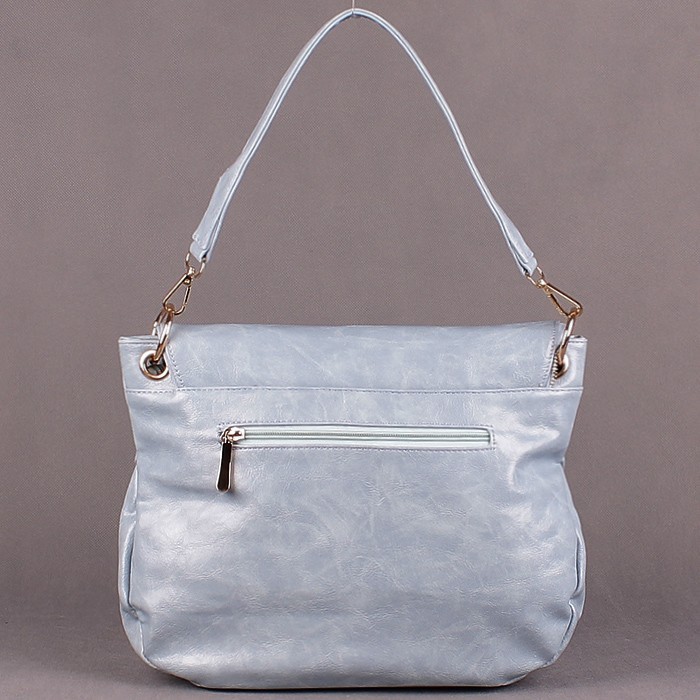 Цвет ярче, чем на картинке - отчетливо голубой. Кожа плотная, сумка удобная.